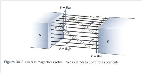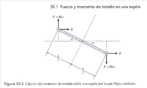 los lados de longitud a producen un momento de torsion que tiende a hacer girar la bobina en